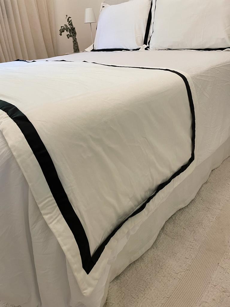 Peseira Veneza. Composição: Percal 400 fios – 100% algodão. Tamanhos: Casal: 0,80 X 2,20m. Queen: 0,80 X 2,40m.